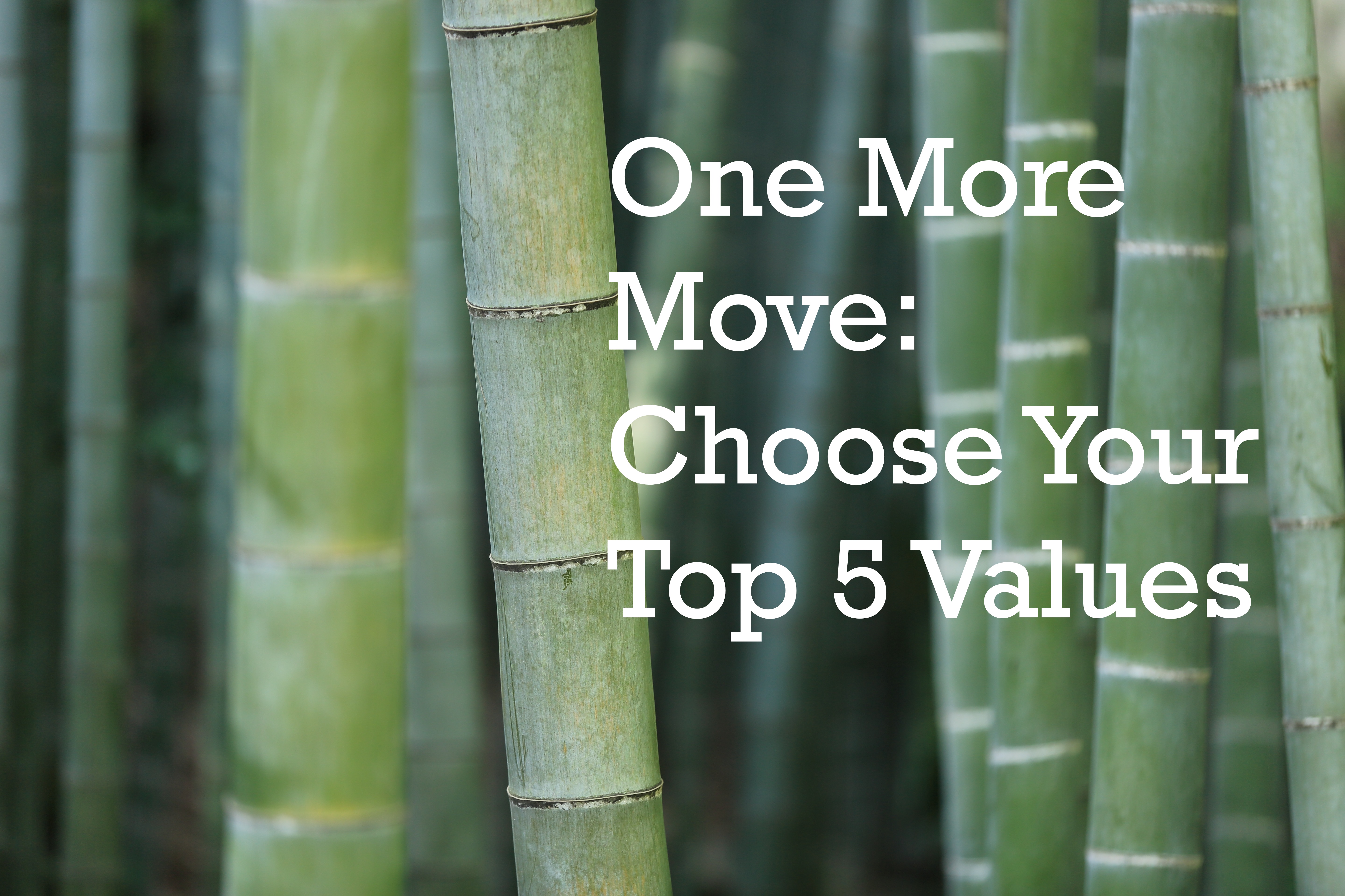 Check out this list of values, that I found on a great blog post. Choose your top 25, then choose your top 5. It’s a simple exercise, but you will build character strength upon completion.